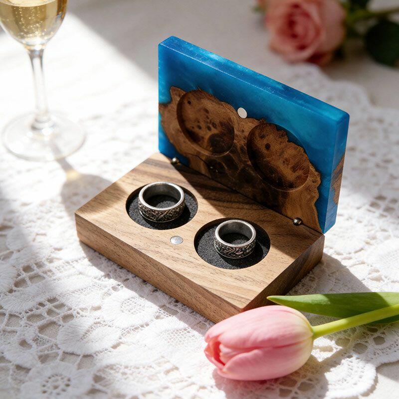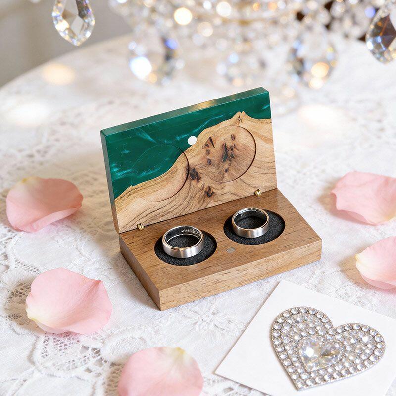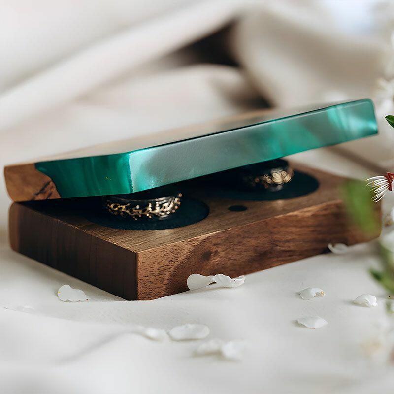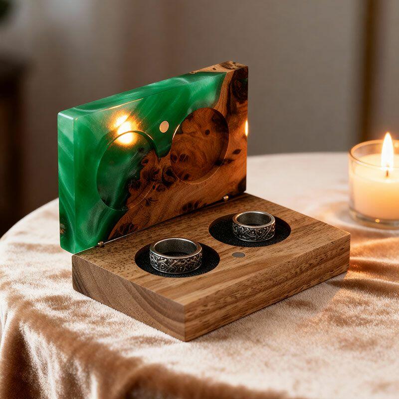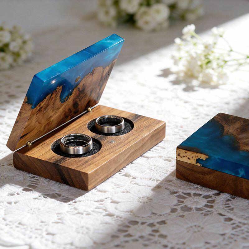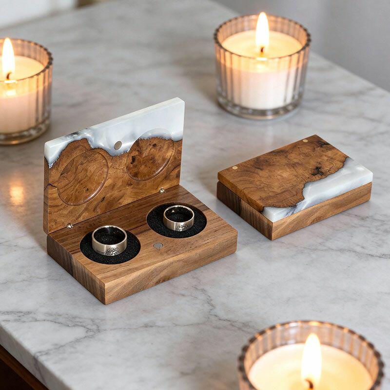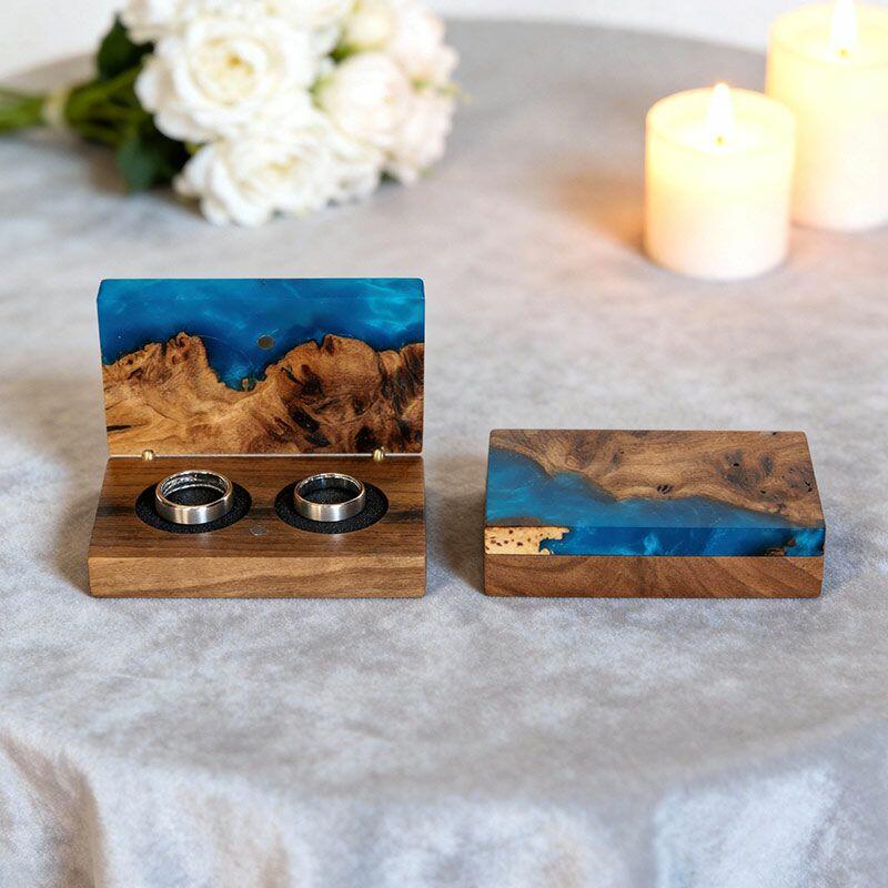 Vintage-Inspired Reslol Dual-Ring Epoxy & Wood Rectangular Box - Bridal Gift