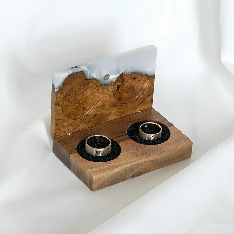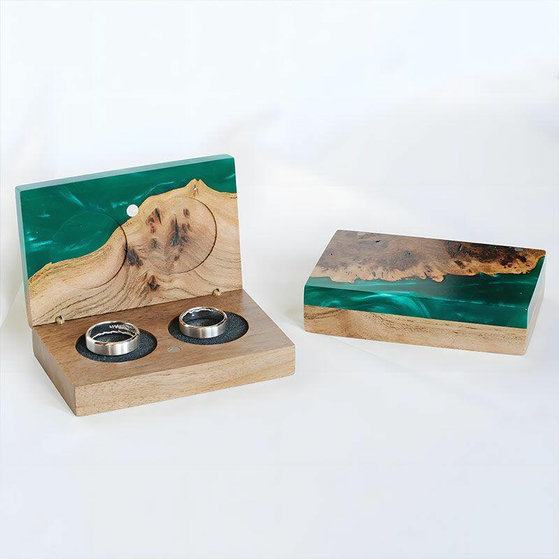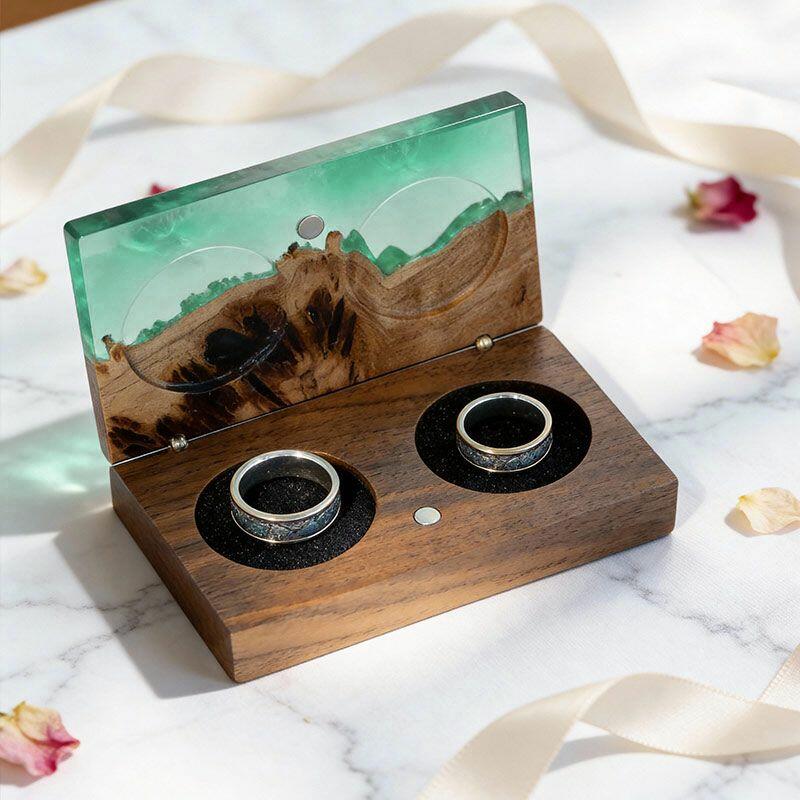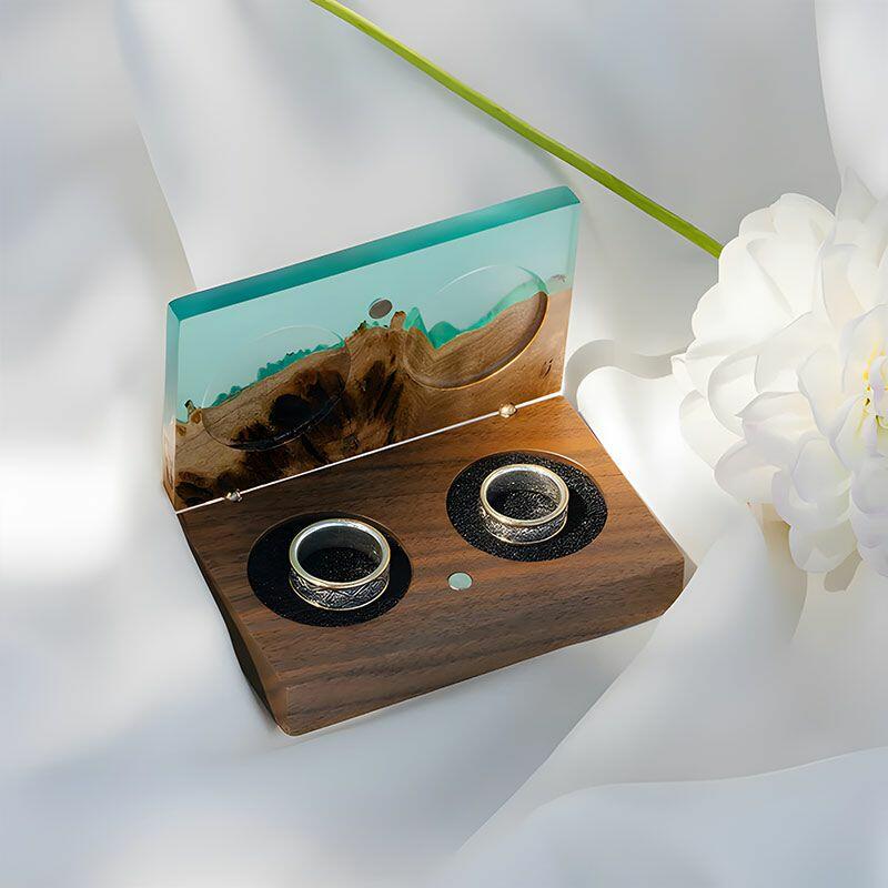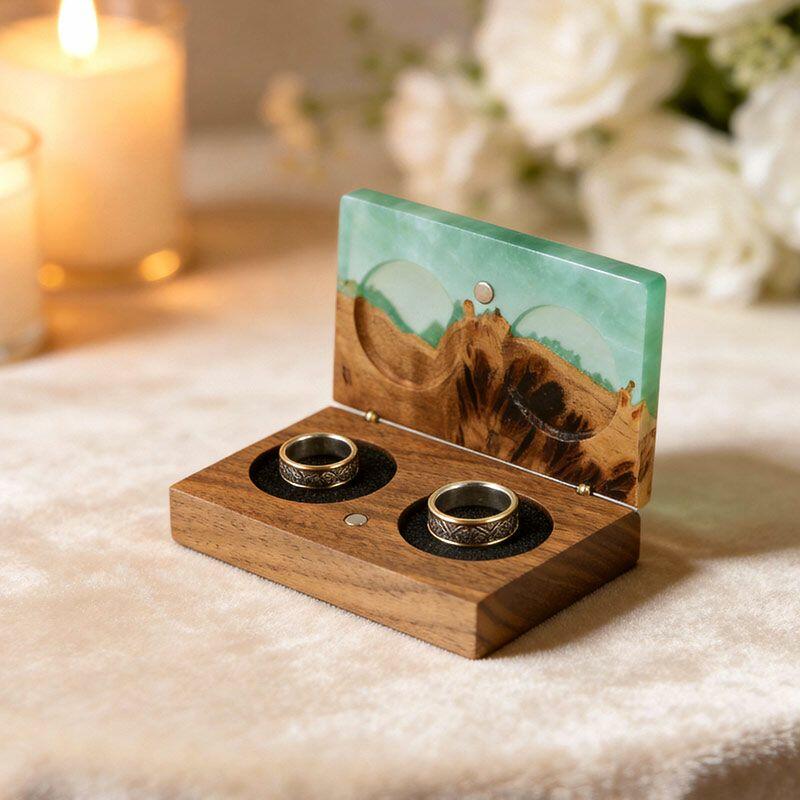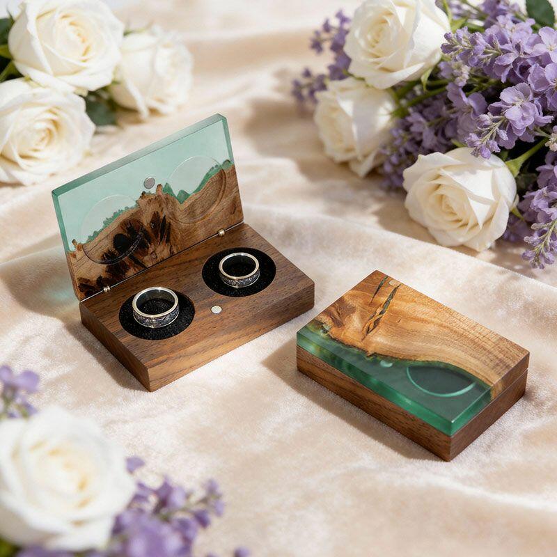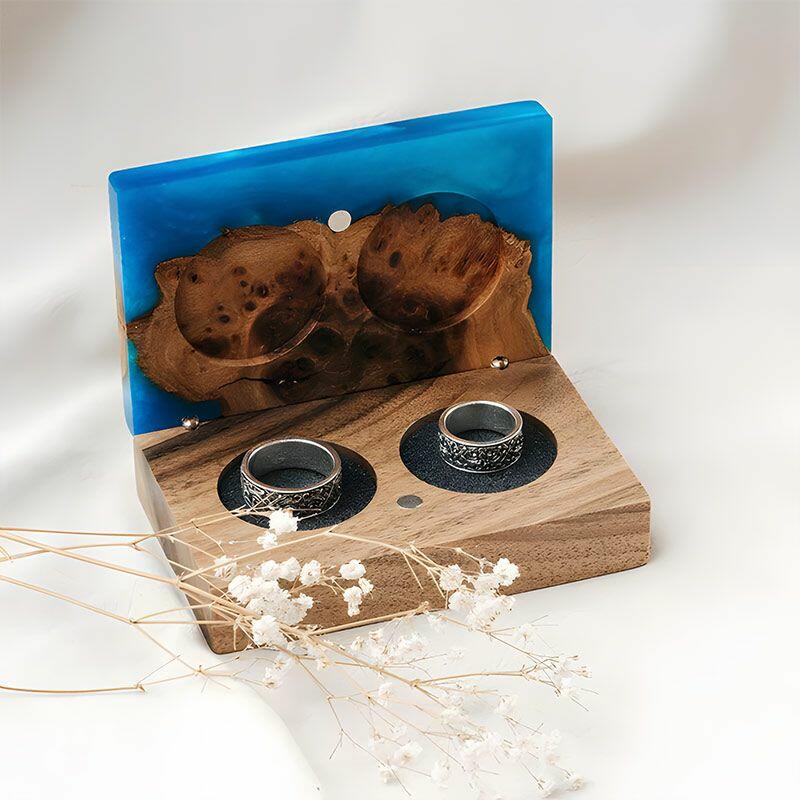 Vintage-Inspired Reslol Dual-Ring Epoxy & Wood Rectangular Box - Bridal Gift