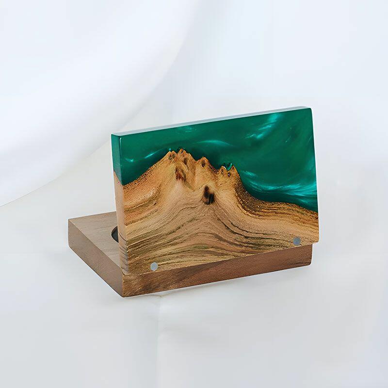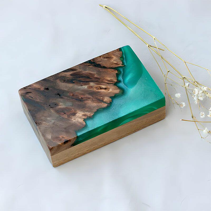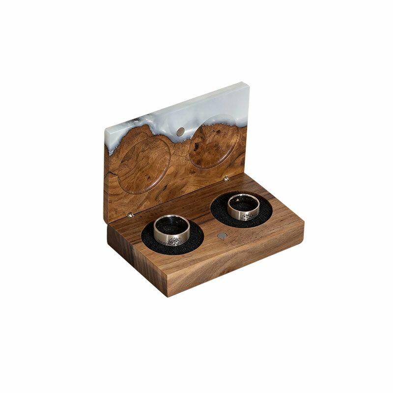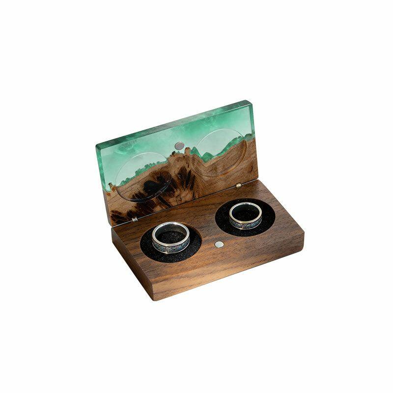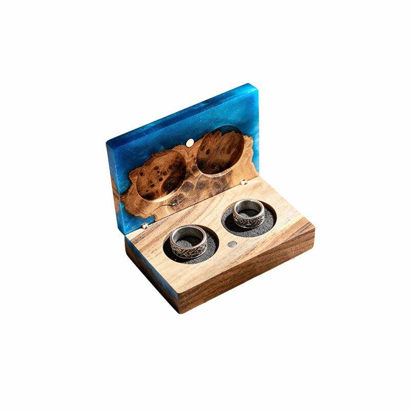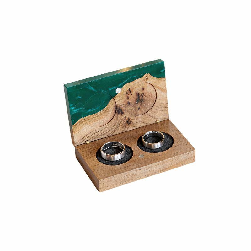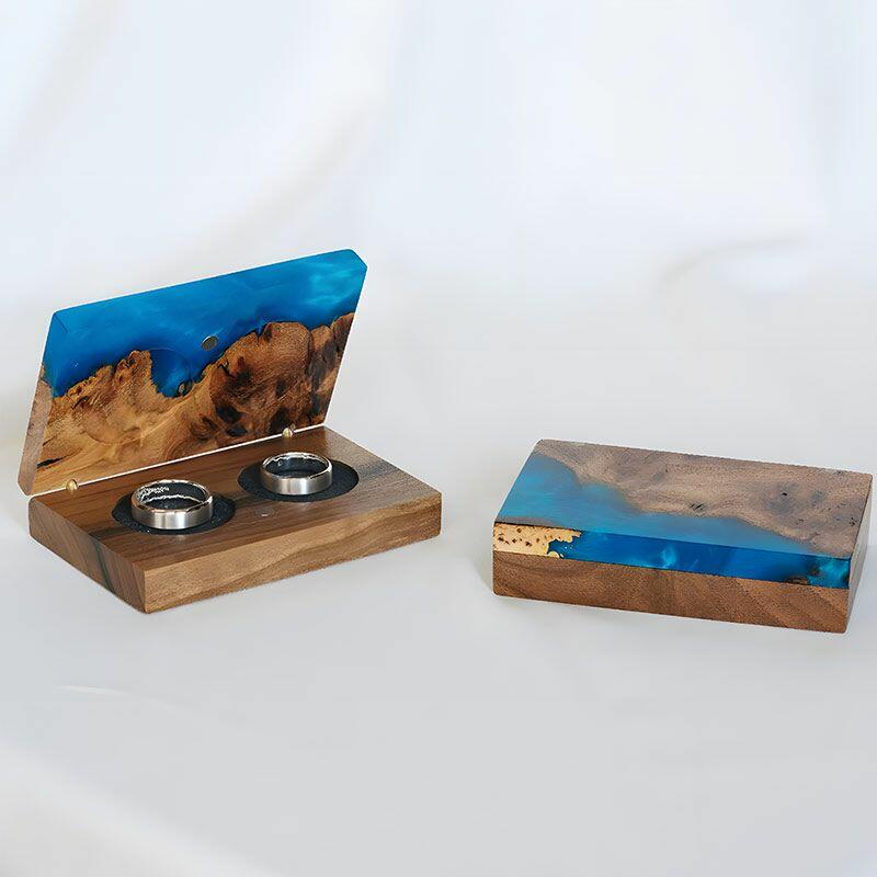 Vintage-Inspired Reslol Dual-Ring Epoxy & Wood Rectangular Box - Bridal Gift