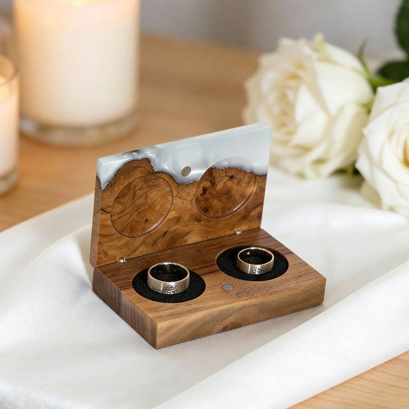 Crafted for quality, every detail speaks to your sincerity: the sturdy wood-epoxy fusion ensures secure dual-ring storage, while the retro rectangular silhouette and hand-finished edges evoke nostalgia, making it a keepsake she’ll display with pride. As each piece uses natural wood and resin, subtle variations in color, texture, or grain make your gift uniquely yours—no two are identical. Note: Hand measurements may have minor differences, and all designs are 100% original, with zero infringement risks guaranteed.