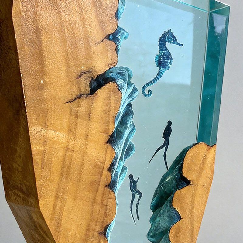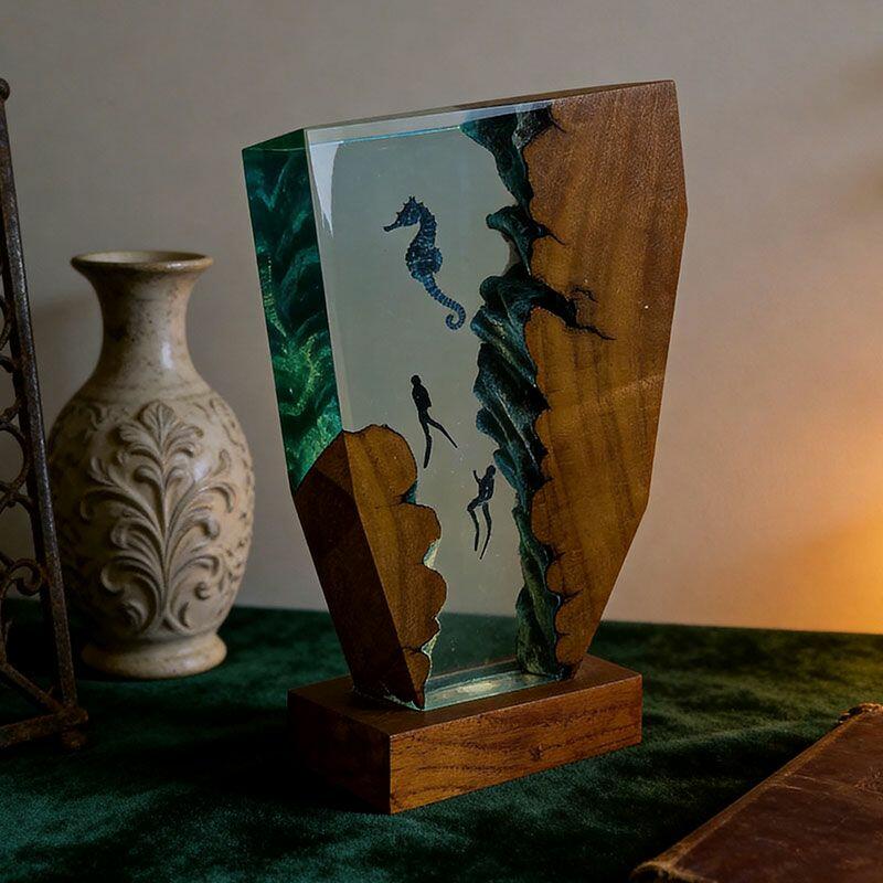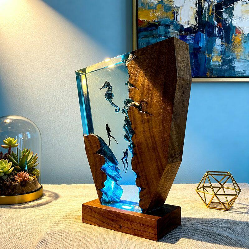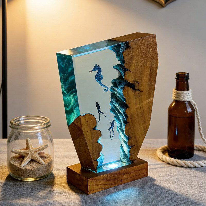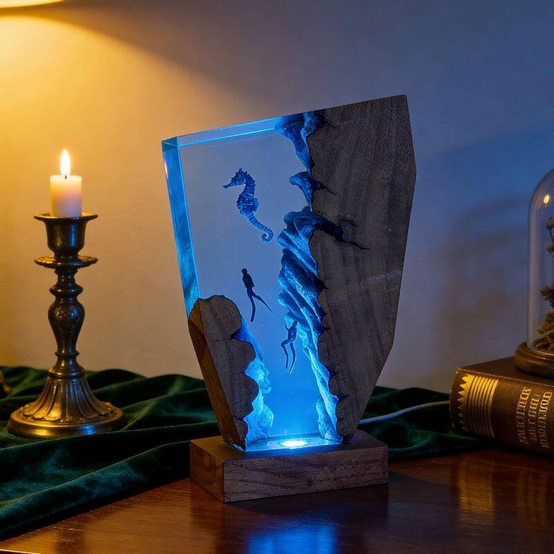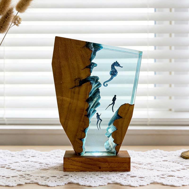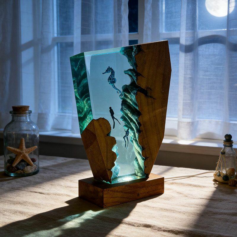 Whimsical Seahorse & Diver Ocean Resin Lamp | Reslol Irregular Decor Gift