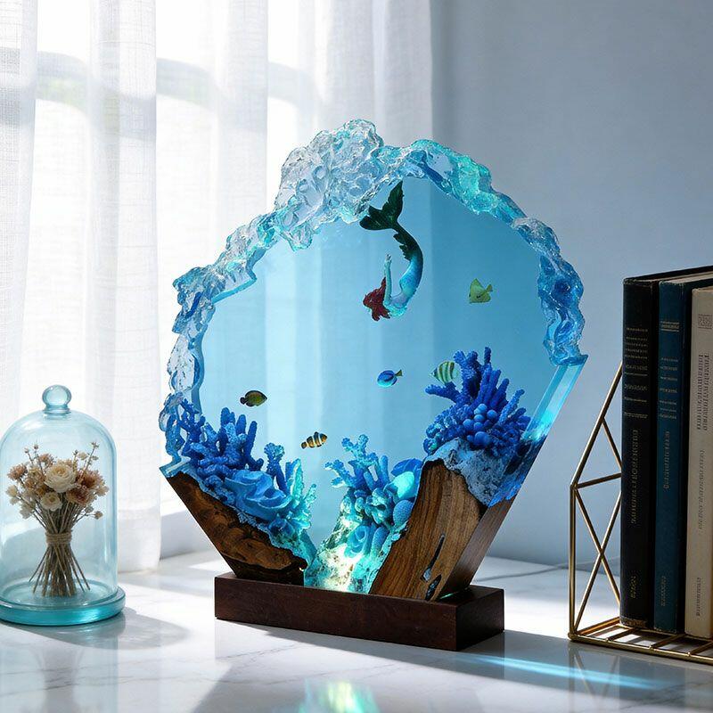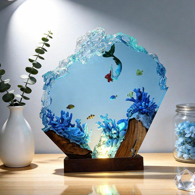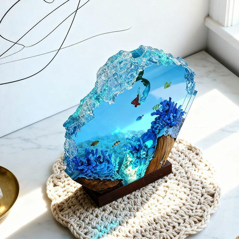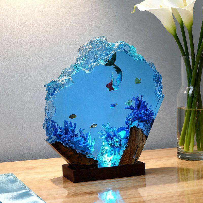 Every lamp is shaped by skilled artisans, ensuring the mermaid’s delicate features, the coral’s textured edges, and the resin “water” effects are rich with lifelike detail. The warm light from within turns the scene into a cozy, magical atmosphere—ideal for gifting to mermaid lovers, boho decor enthusiasts, or anyone craving a touch of underwater whimsy.