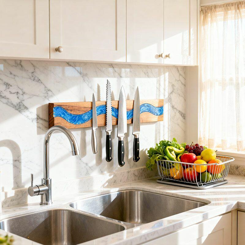 Wonderful Ocean Blue Resin Wood Magnetic Knife Holder - Wall-Mounted Housewarming Gift
